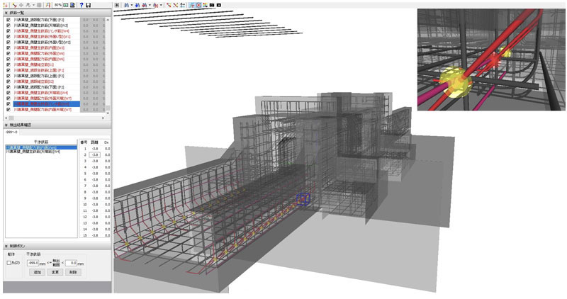 2次元図面では鉄筋が干渉しているかが分かりにくいため、3Dモデルを作成して干渉チェックを行います。