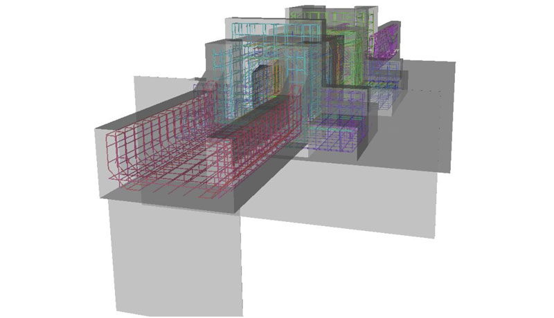 2次元図面では鉄筋が干渉しているかが分かりにくいため、3Dモデルを作成して干渉チェックを行います。